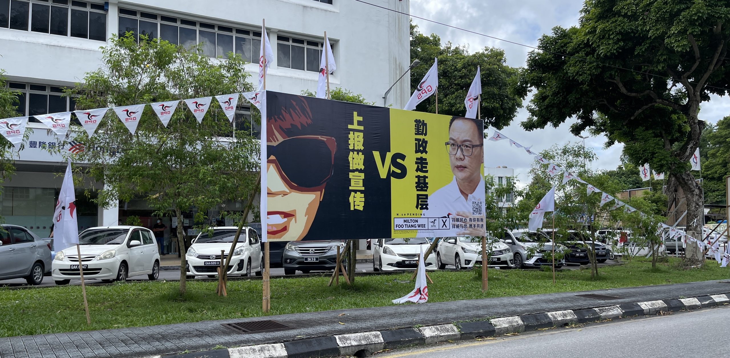 古晋选区旗海飘扬 抢“风水位”置横幅看板