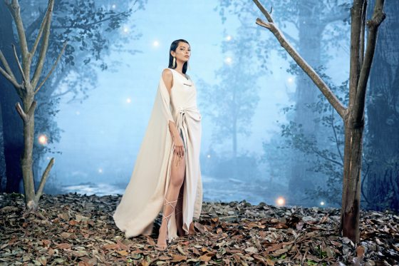 Fiziwoo是由双人设计师Hafizi Radzi Woo及Izree Kai Hafiz联手打造的品牌,而他们为人鱼公主Ariel所设计的礼服,则是自她有了双足,第一次踏足陆地的那一幕所穿的服饰,取得灵感而设。绉褶的处理方式则源自于海洋的贝壳线条。