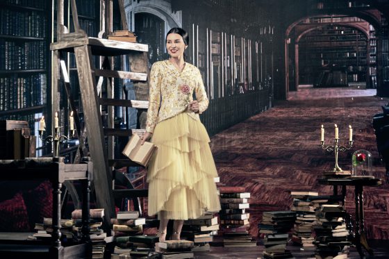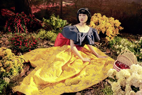 穿上黄色长裙、蓝色上衣,再系上红色发带的Snow White造型,源自于Disney在1937年推出的电影。这么多年来白雪公主的这个造型早已“深入民心”,经Khoon Hooi重新设计,让有巨型泡泡袖的上衣、带花样图案的艳黄色长裙,还有鲜红色的宽腰带,将经典造型进行全新演绎,叫人眼前一亮!