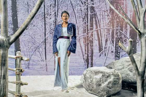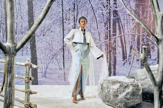 Melinda Looi表示她的小女儿最爱的便是Elsa公主,而今次她为这位公主设计的高开叉式的长裙,其实设有一个拉链设计,可以依不同的场合调整高度。所设的外套也可内外翻动,备有两个不同的造型。在细节的部分则采用了Swarovski水晶点缀,再结合钉珠和亮片,打造雪花的感觉。
