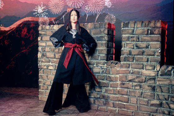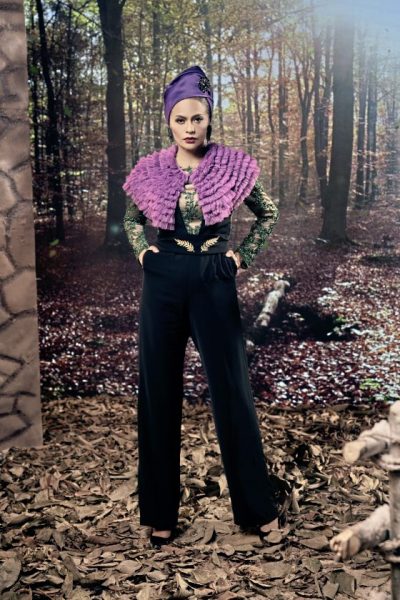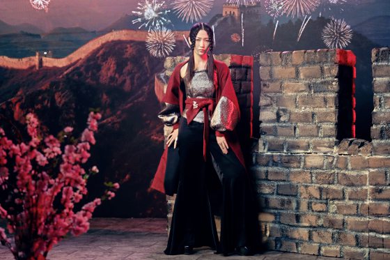 Melinda Looi觉得在众多的公主中,她最爱Mulan,这名Disney公主具备勇气、忠义气质,勇于接受挑战和她的性格也十分相近。在她的设计里,为Mulan设计了一套裤装,一展英姿。所设的外套同时也可以内外翻作不同的日与夜造型搭配,可满足女性随时变装出席宴会的需要。