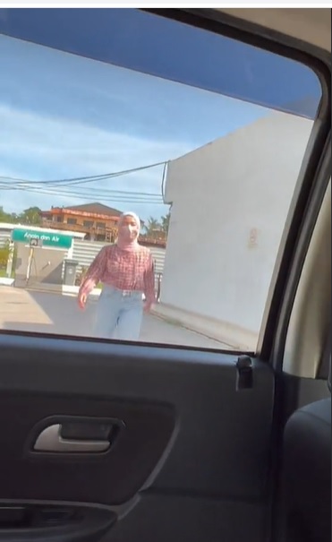 TikTok用户拉兹阿米拉上载17秒短片,他从车里拍摄被落在芙蓉一家油站厕所外的妹妹,一脸委屈的站著等他们回来。