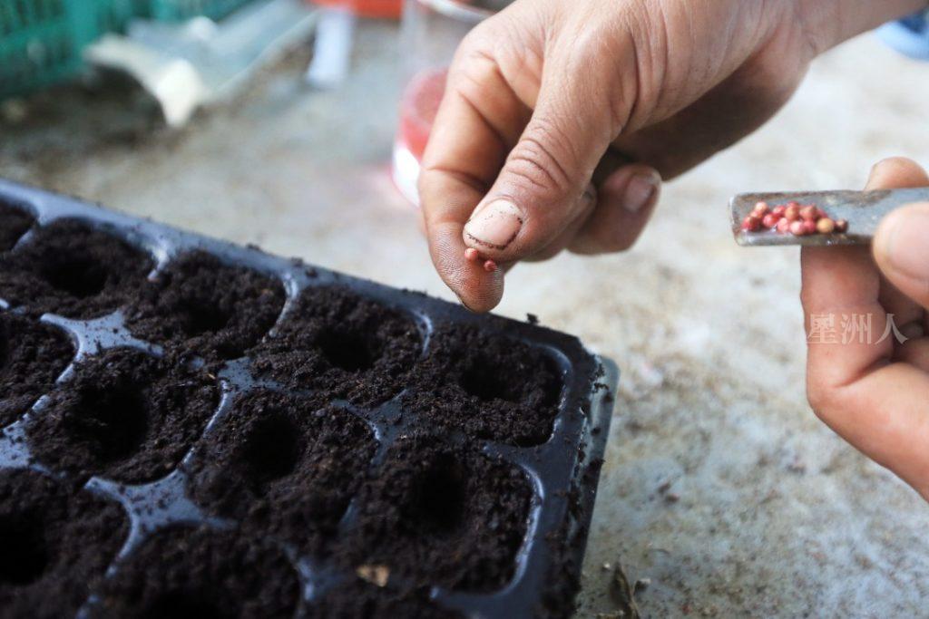 取出种子抹干,静置2小时后,准备播种。将种子洒在土中或准备好的容器如花盆,盖上一层薄土,耐心等待种子发芽。