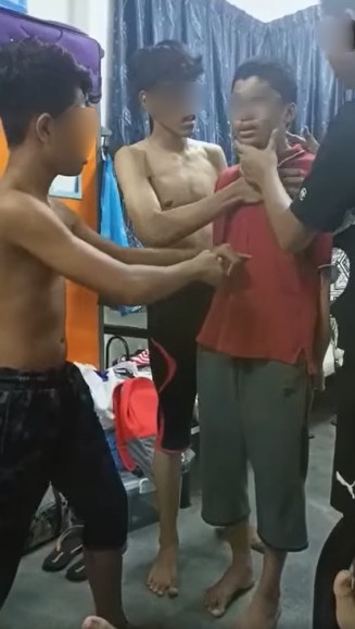 署名为“Faez Hamzah”的巫裔男子周四晚间通过脸书上传数则视频,可见该少年被数十人团团包围在宿舍房间里,直愣愣地站着不发一言,被殴打时仅偶尔皱眉,丝毫不敢发出半点声音。