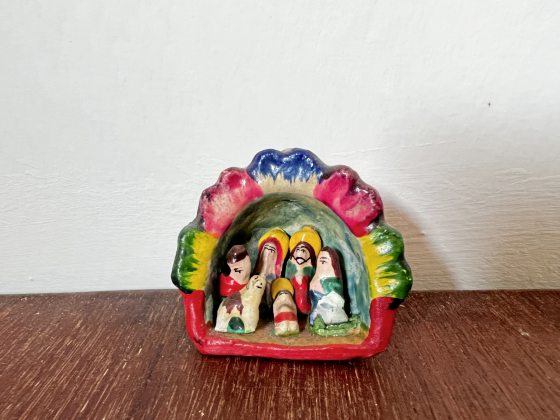 我家没有布置马槽的习惯,因为爸妈没有收集这些圣诞陶瓷的传统,因此唯有自己慢慢收集这些“传家宝“。曾在二手店中寻获数个马槽,每一个都是我的心头好。有一个是来自墨西哥的迷你版马槽,它只有核桃的尺寸,非常娇小可爱,可放置在桌面或是挂在墙上,浓浓的墨西哥色彩和淳朴的造型,让人心疼和爱惜,我二话不说地拎起付款去。