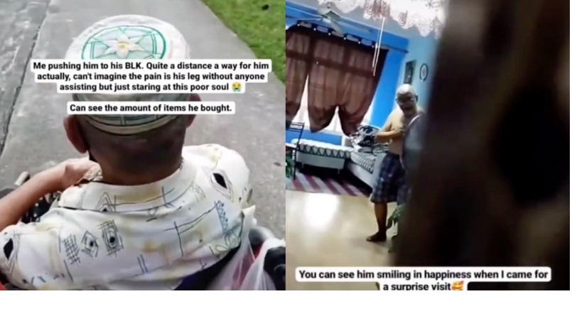 《8视界新闻网》报导,署名“Alfian Abdul Ramlan ”的男子星期一(13日)在社交媒体平台TikTok分享说,他回家途中碰到一名坐着轮椅的老翁,对方的大腿因为糖尿病而肿胀。老翁当时艰难地推着放了许多物品的轮椅前行。