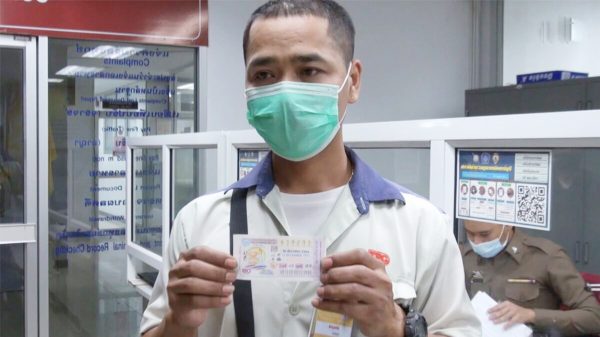 (泰国·曼谷18日讯)泰国巴真武里府甲民武里县警署16日接到男子甘廊(40岁)前来报案,声称自己购买了12月16日开奖的彩票,结果幸运买中一张头奖,奖金为600万铢(约马币76万令吉)。