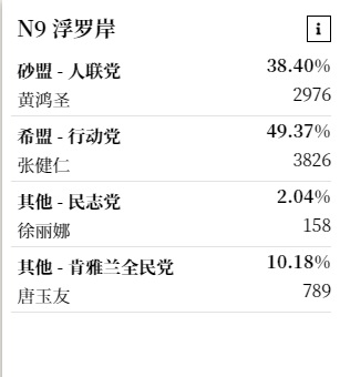 至于上阵28席的公正党及8席的诚信党,全部落后。