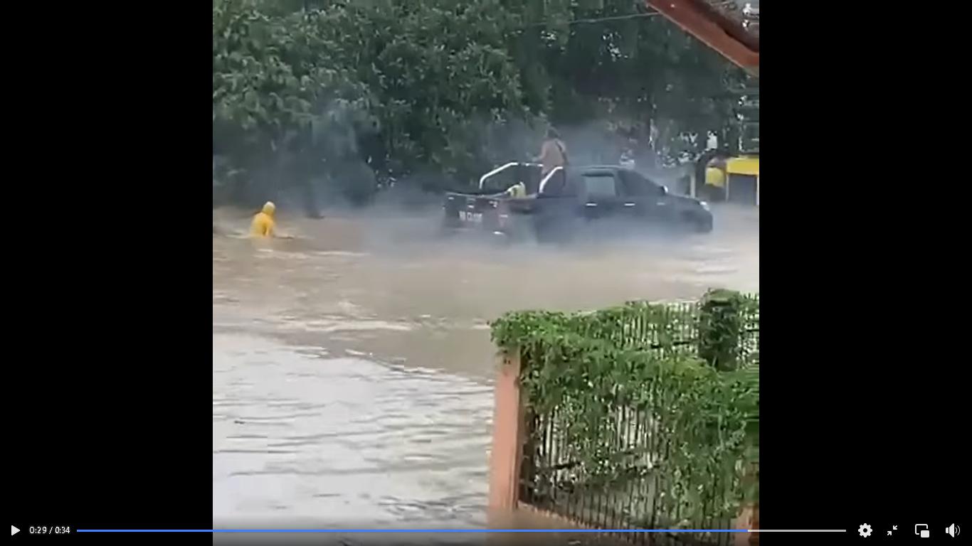 根据一名手机用户的远距离拍摄,事发现场一片洪水滚滚,有5人正在深可及膝的洪水区缓慢步行和骑推脚车移动。