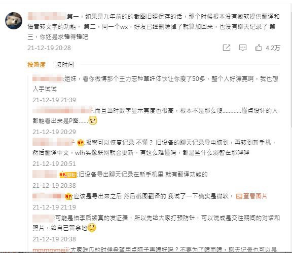 眼尖的网民也抓包Yumi公开和王力宏的微信截图,原本该软体翻译会标注“由微信提供翻译支持” ,其中一张却标注“由微‘软’提供翻译支持”,遭质疑对话截图可能造假,而且微信的翻译功能疑似也是2014年才推出的,而王力宏的大头贴更是2020年1月份左右所公开的照片,种种细节都与Yumi文中的时间点不符,让网民忍不住留言“智商不高别丢脸”、“别再P图了,全是破绽呢”;还有网民认为Yumi若是正牌女友那为何当王力宏告诉她要跟李靓蕾结婚时,她竟可以大方祝福,并谎称自己是因为赌气才祝福,让网民认为太过牵强,肯定是和平的炮友关系才不敢吵闹;也有部分网民出面替她缓颊,表示“使删了好友,讯息还是能被找回”。