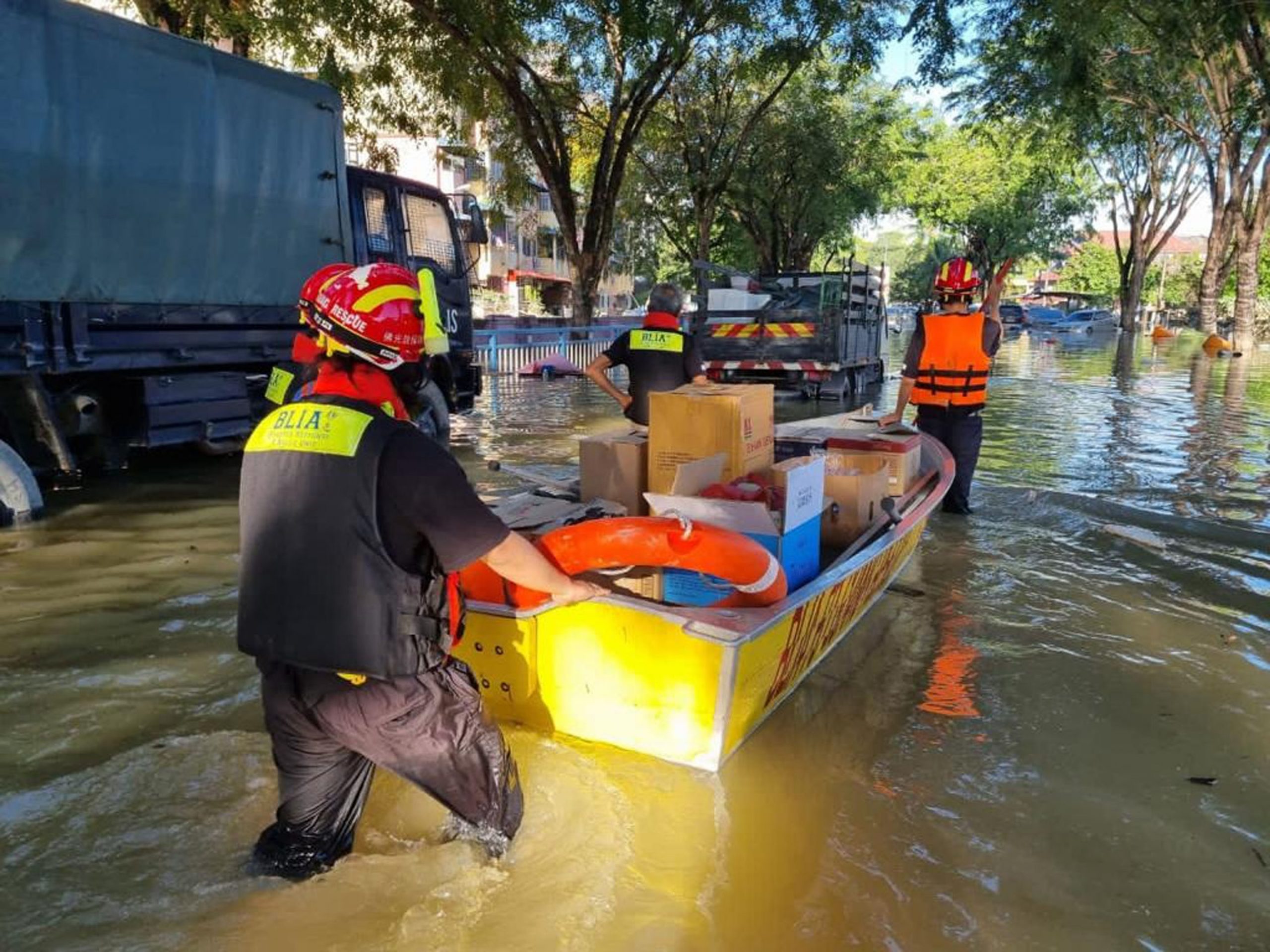 马来西亚佛光山的救灾工作已经进入第五天,虽然一些灾区的水已渐渐消退,但却留下满目疮痍,灾民面对的是善后和重建家园的问题,更面对一家三餐温饱的窘境。民防救护队在慧护法师带领下,今早6时半便到灾区分发饭团、面包和糕饼给需要的灾民,而中马协会理事们则将在中午时分到灾区去,兵分多路分发1000个食物篮给需要的灾民。
