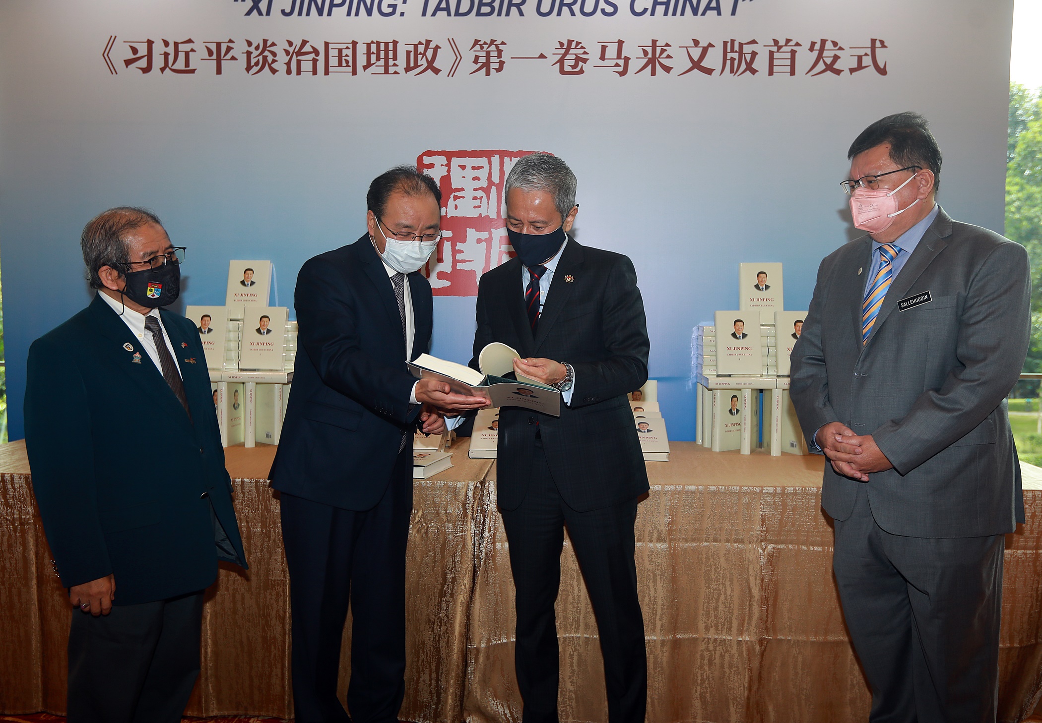 他今日联合中国驻马来西亚大使欧阳玉靖,正式为《习近平谈治国理政》第一卷马来文版首发式主持新书揭幕仪式。