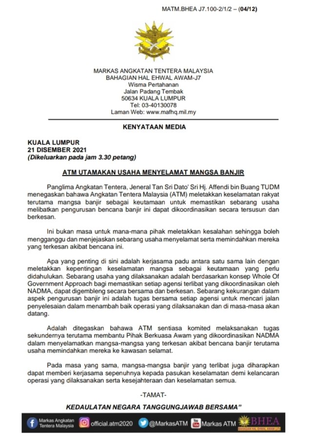 — Angkatan Tentera Malaysia (@MarkasATM) December 21, 2021
