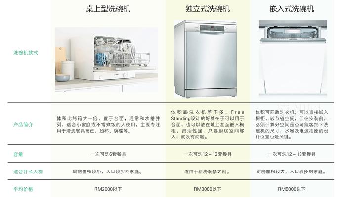 确认完空间之后,就要看看款式。目前市售的洗碗机主要分桌上型、嵌入式和独立式3种,体积、安装位置及方式都有所不同。