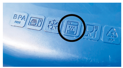 如果你不能确定家中塑料用品是否耐高温材料,可以翻看下底部,一般情况下三角形里面标注是“5”或写着“PP”,则说明放洗碗机没问题。