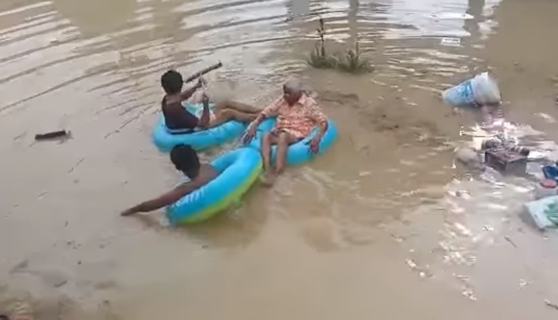 等不到救援 灾民出动救生圈扫把逃出灾区