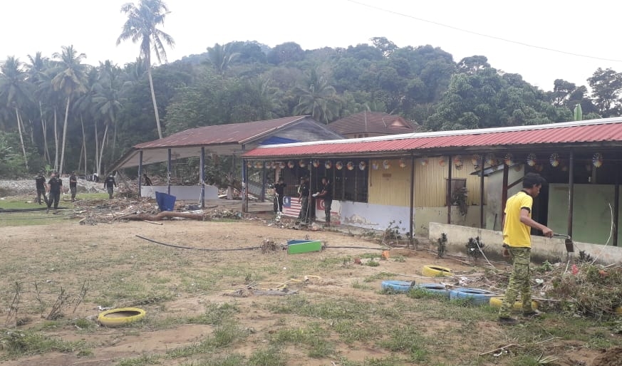 她表示,由于是学校假期,老师很多回东马家乡,因此学校没有人手清理,庆幸有义务人士今天开始到学校帮忙清理。
