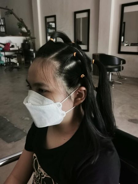 “为善最乐!让世界多些关爱!我们很自豪女儿的决定,剪下的头发也可以捐给为癌症患者制作假发的单位,这主要是鼓励大家一起去做善事。”
