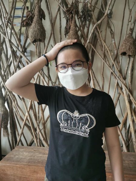 小妹妹林贝倪(10岁)是在得知有这项“光头与美4.0癌症醒觉与募款活动”时,立刻征求母亲的同意,让她母亲大吃一惊。