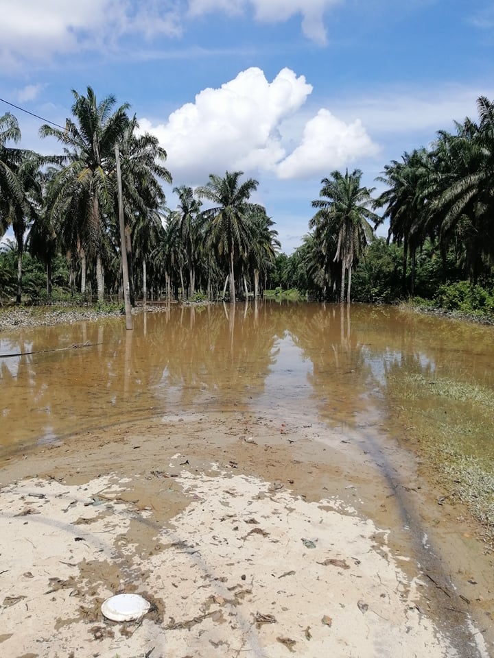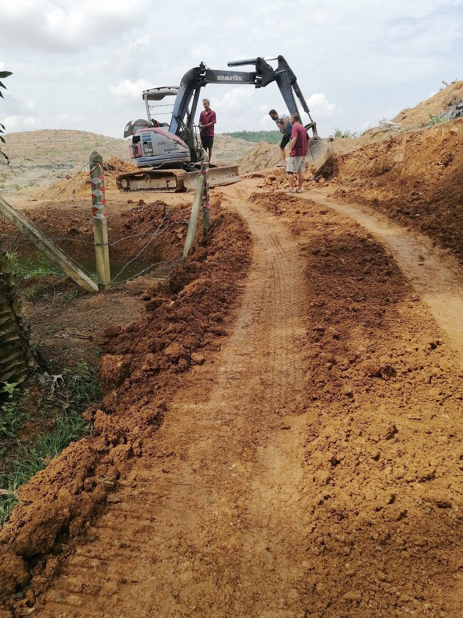 “眼看马路淹水一时半会难以撤退,一些村民决定动用挖泥机,在附近油棕园的一段沟渠铺平开路,希望能通到直凉寻找救济品。”