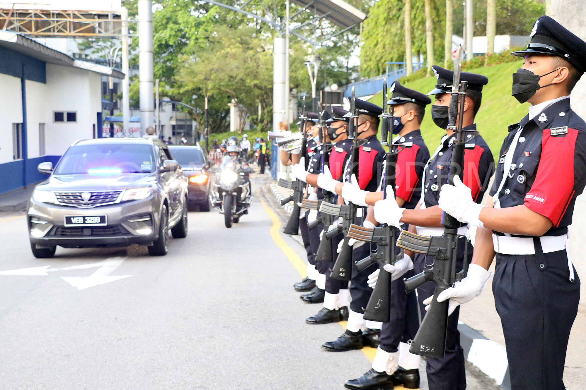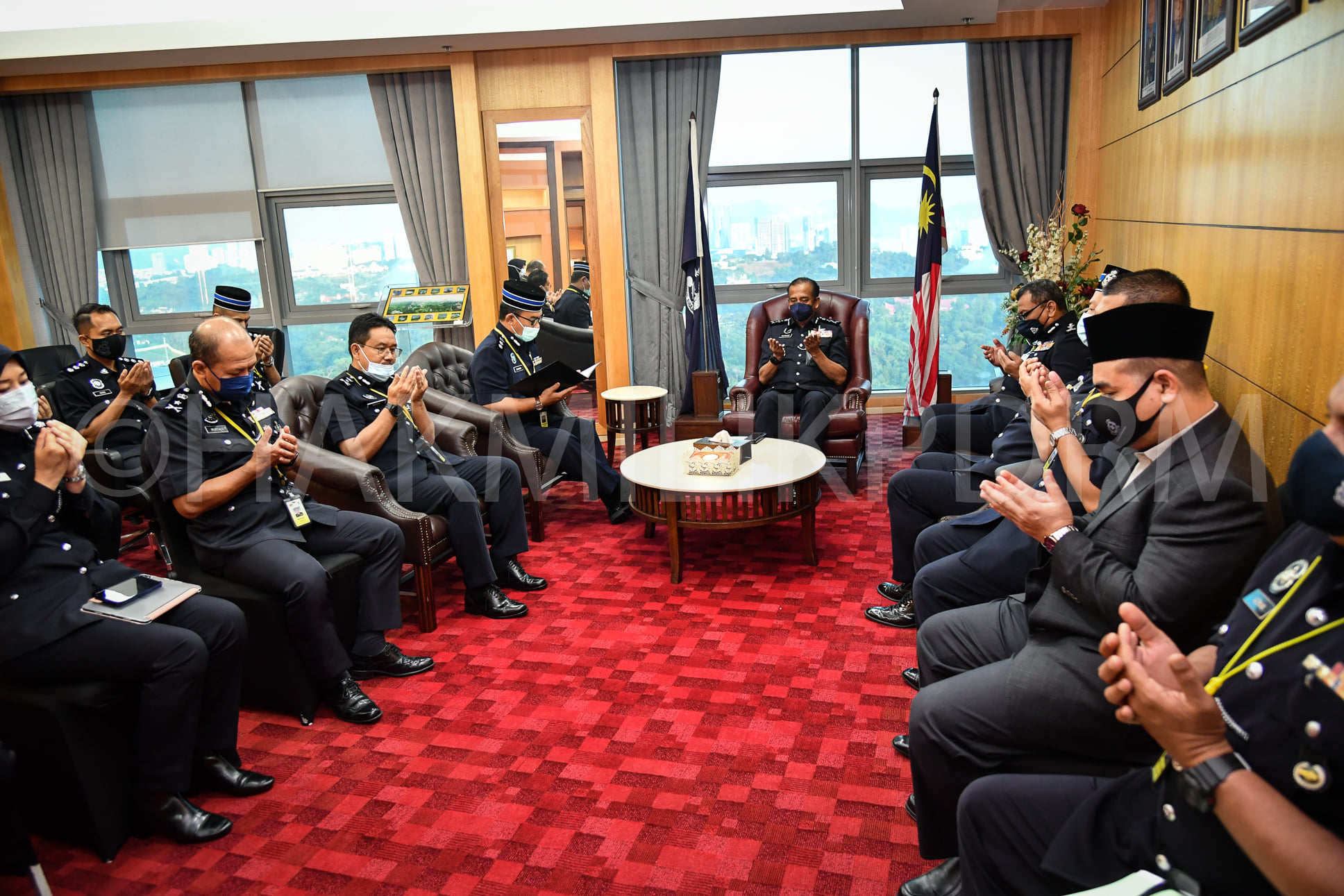纳沙鲁丁今早在武吉阿曼全国总警长秘书出(行政)主任鲁斯兰副总监及秘书处多名警官的陪同下,抵达武吉阿曼警察总部办公室打卡上班及进行祈祷仪式。