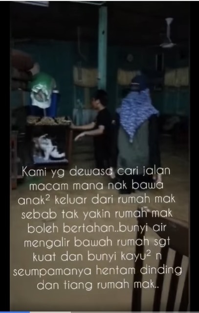 哈亚蒂也在视频中叙述水灾发生的经过,指他们一家在水灾前一天烧烤时,已经不停下着小雨,直到第二天晚上9时水位开始涨至屋内地板,导致大家也开始慌乱。
