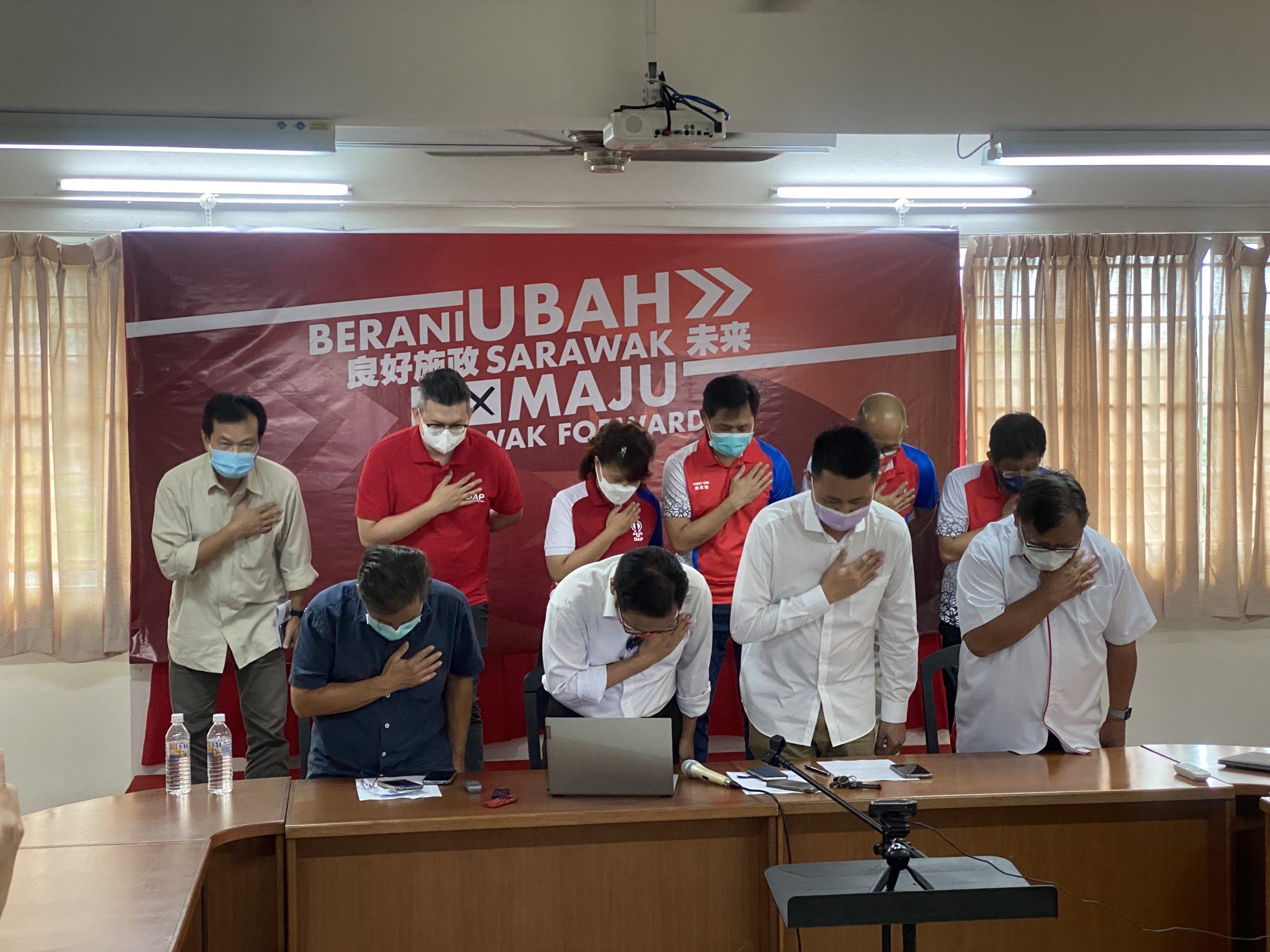 砂行动党州委今日在党总部召开会议,对第12届砂选举进行剖析及讨论。砂行动党主席张健仁也带领州委团队向选民鞠躬道歉。