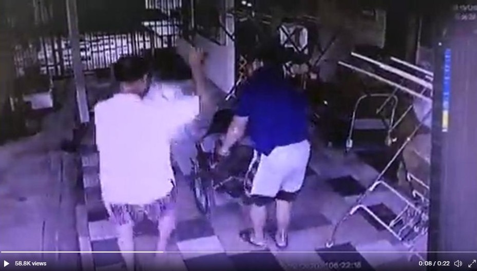 男子在短短10秒中前后殴打了脑麻患者3次,行径令人咋舌。
