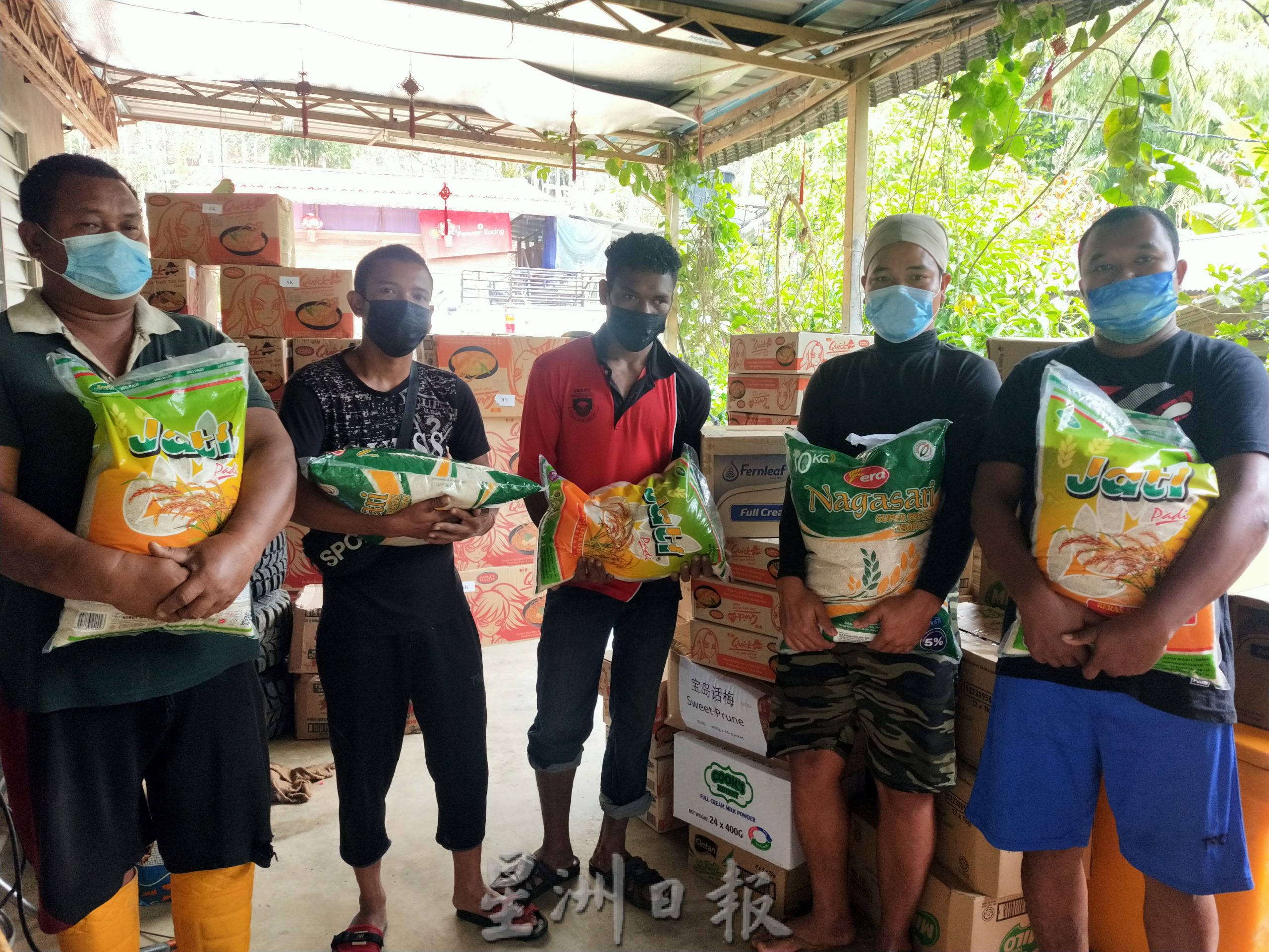 米粮已经送到话望生森林边缘的中途站。 几位原住民收到米粮时非常高兴。(林美娇摄)