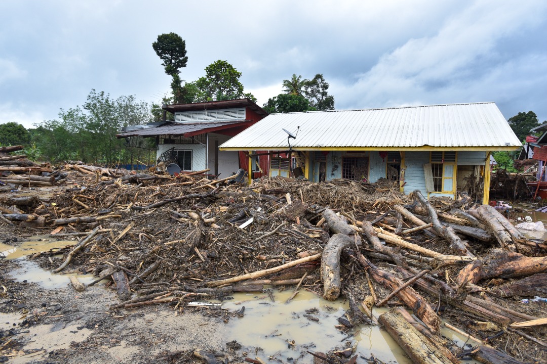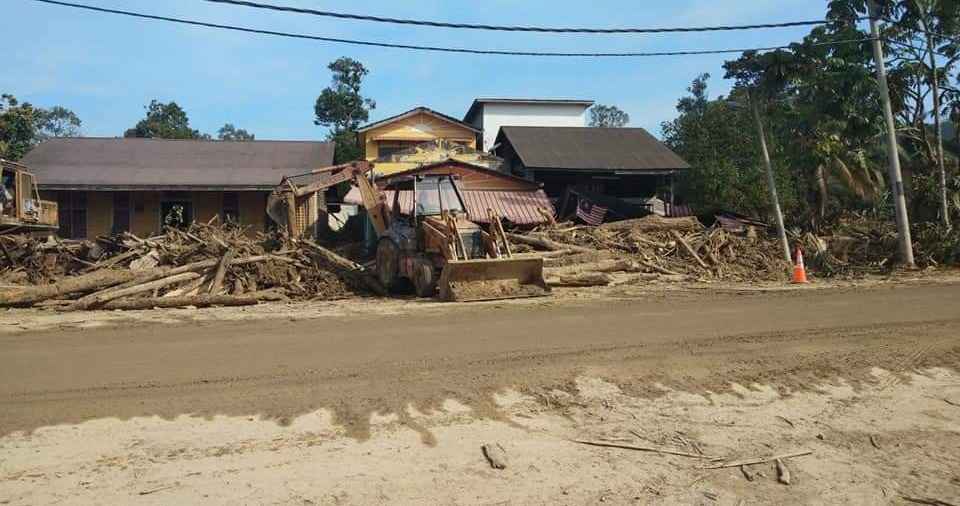 (地里望2日讯)彭亨双溪必得新村经历一场“树桐海啸”,必须得出动重型机械才能把堆积在住家前的树桐移走;因为这样,在水灾后至今两个星期,灾民对收拾残局一筹莫展,也无家可归。