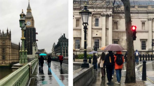 伦敦常年多雨,不一定要在冬天,任何季节都是雨季,即使是阳光普照的下午,冷不防捎来一场太阳雨,细小的水珠细细密密从天而降,带着阳光的影子,一洗城市中的尘埃,闪电似来得急也停快。