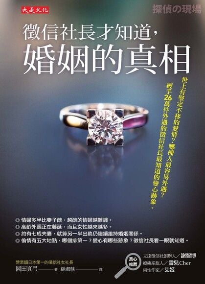 本书作者是一位调查过26万件外遇咨询的征信社女社长,她在书中揭露了一项惊人数据——约七成日本夫妻,就算掌握了另一半出轨的证据,仍选择维持婚姻关系。因此,书中少不了罗列“百忍成金”的经典个案,作者亦借题发挥让读者重新审视婚姻价值;更可贵的是,她通过与委托人的交谈,真实反映日本社会对贤妻良母的期待。