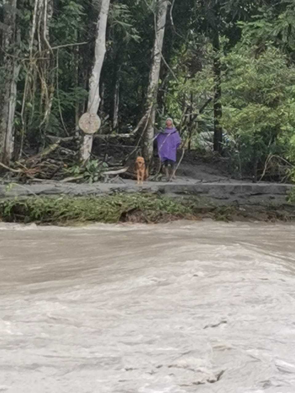 他是于周日中午因河水暴涨、水势湍急无法渡河离开受灾区而受困。