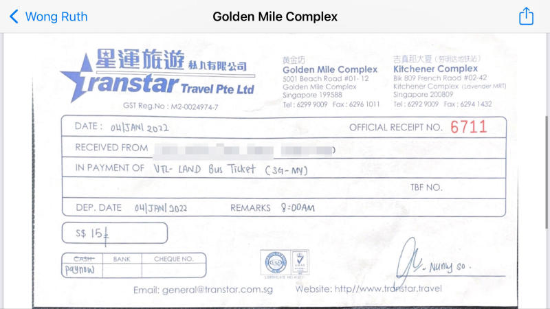 庆幸的是,星运旅游(Transtar)和Causeway Link都给予回复,她最后选择星运旅游,公司则在周一(3日)傍晚通知她行程细节。