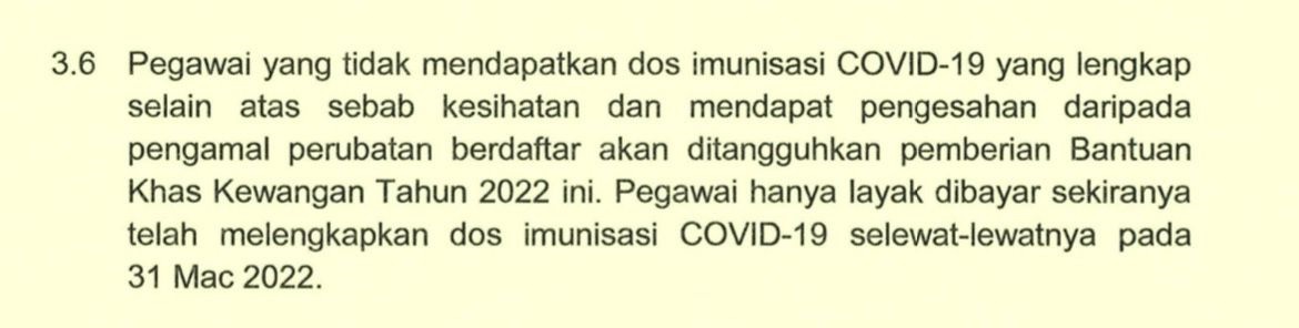 (八打灵再也4日讯)未能在3月31日之前完成冠病疫苗接种的公务员,将无法获得政府所发放的700令吉特别援助金!