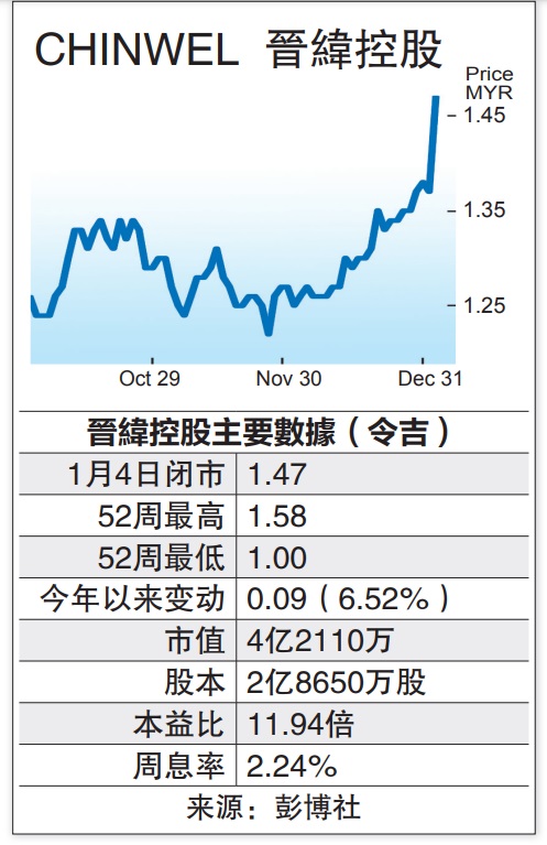 “同时,中美贸易战令美国市场对钢铁紧固产品需求持续殷切。晋纬控股2021年销售增长16.7%,至1亿4090万令吉。该公司管理层指出,截至今年3月的欧美大宗订单已满额,而美国自助(DIY)扣件订单也全满至6月。”
