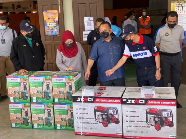 贸消部今日移交250份物资给水灾灾黎,同时也移交高压清洗机和汽油发电机给村民代表,协助清理灾后家园。