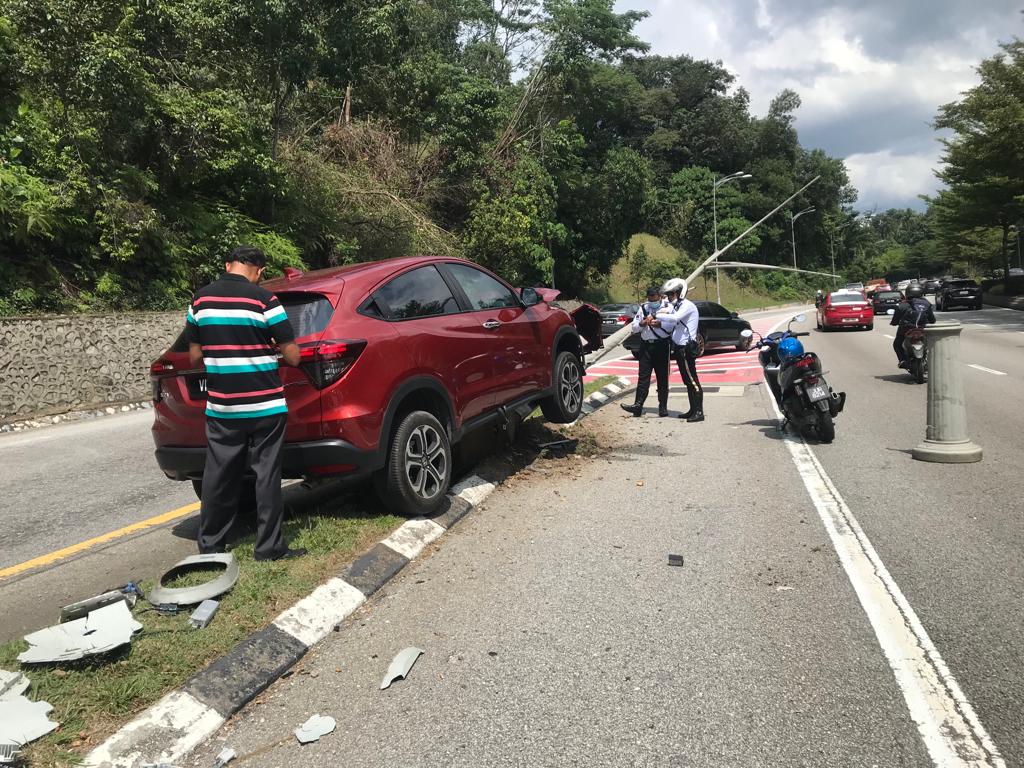 (吉隆坡7日讯)一辆休旅车在途经分岔路口时失控酿祸,将分界堤的生生撞弯,所幸仅酿成车头损坏,司机安然无恙!