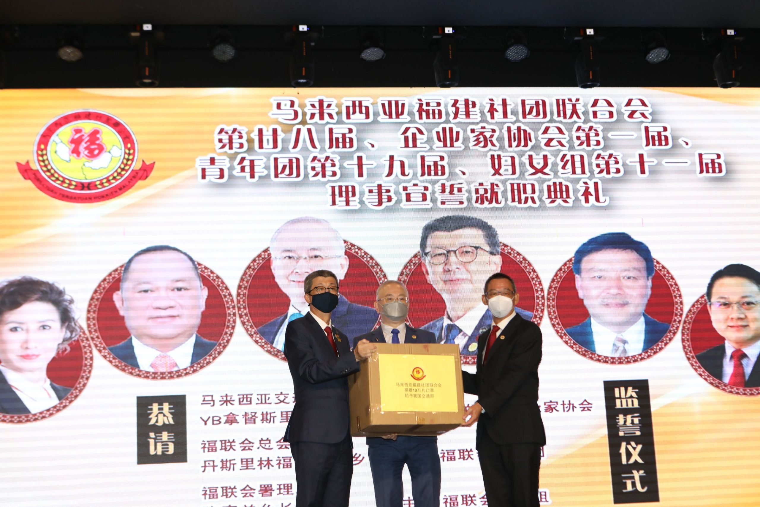 仪式上,大马福联会也移交赠捐10万片口罩给交通部,协助抗疫防疫工作。