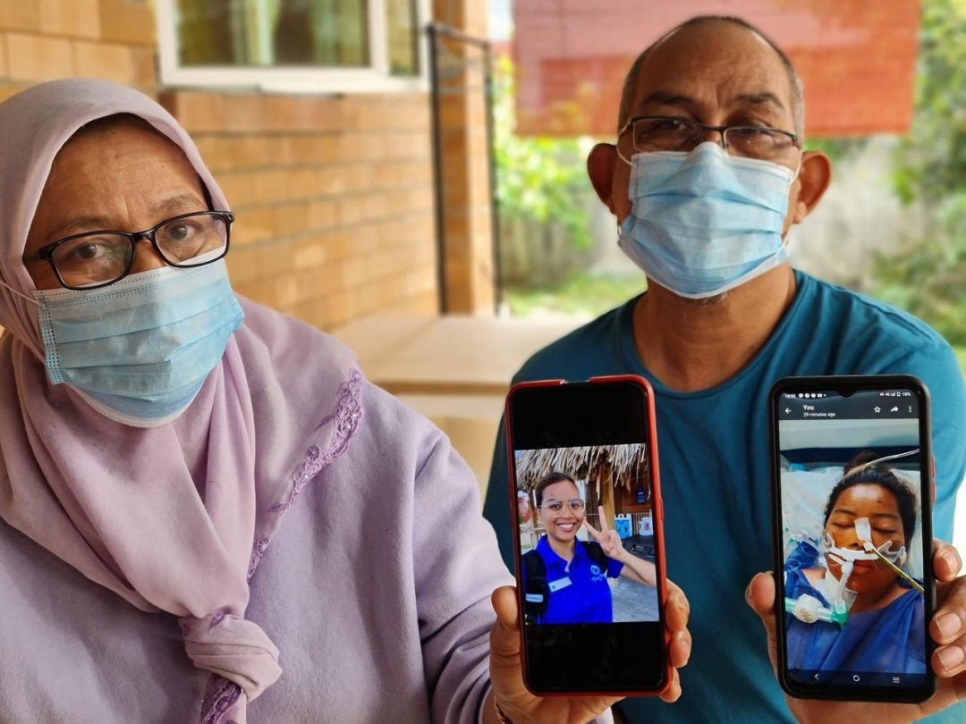 (新笃10日讯)25岁新笃北大生努娜比拉在国外实习时发生意外截肢保命,其母亲诺玛尼拉(57岁)昨日在北大校企合作中心(CUIC)总监峇达利亚及副总监莫哈末希尔米陪同下,飞到委内瑞拉库拉索医院探望女儿。