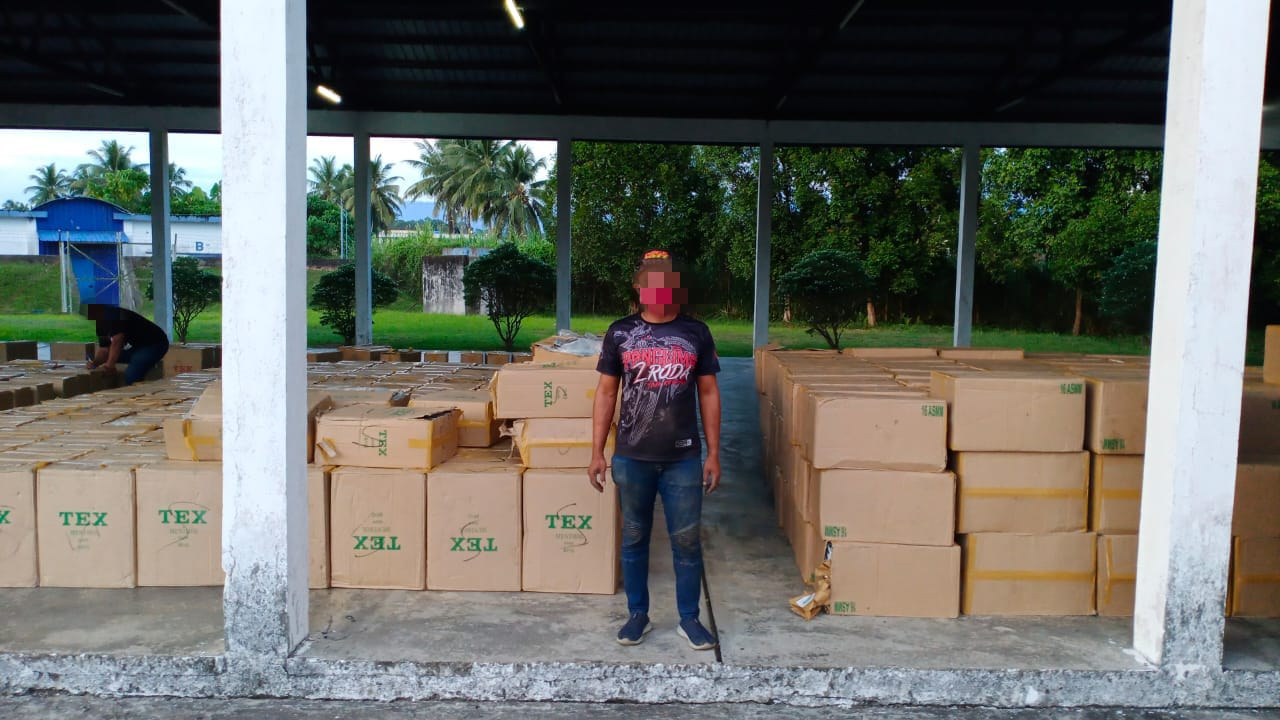 他指出,特工队人员在对该罗里进行观察后,在摩罗带柏沙的甘榜伊班截查该罗里,结果发现604箱各种品牌香烟,包括16万1600包A-satu、 10万8500包Tex Hijau、 6万8000包Tex Merah及2万4500包Tex Biru,估计价值869万零888令吉。