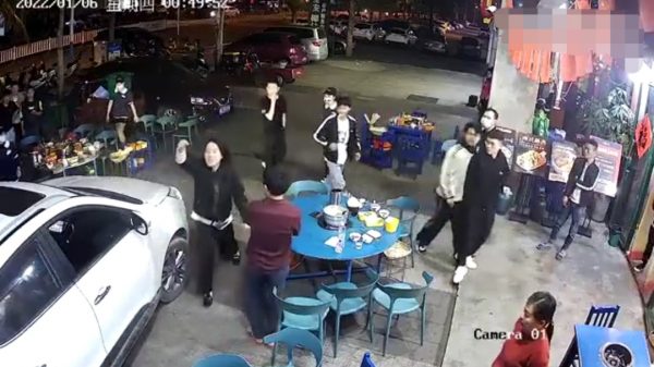 事情于本月6日凌晨12时50分左右,发生在中国海南万宁市万城镇一餐馆门口。