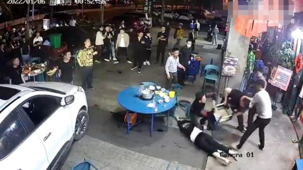女子的飚骂立即引起路边三名男食客不满,双方从争吵演变成武斗,众人打得不可开交。