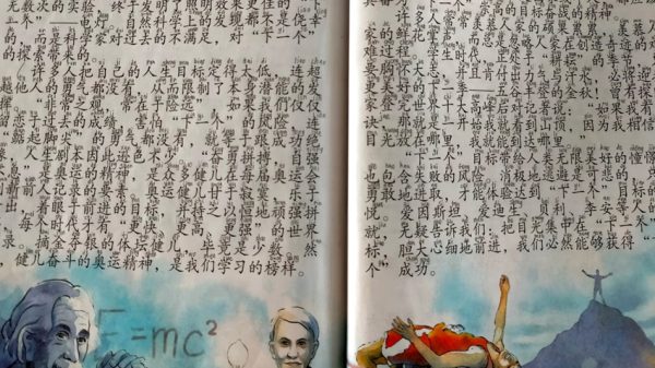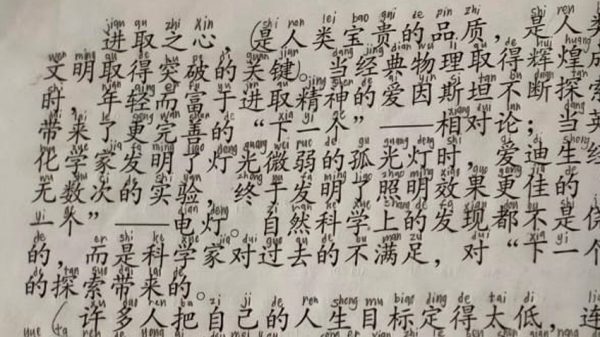 翌日,我继续与学生上课文理解。达玛拉瘦小,我安排他坐在前排。无意间,我发现他竟然在课文的每个华文字上注明汉语拼音!我的天啊!他这个举动再次暖化了我的心,顿时有点为昨天对他说的犀利话语过意不去。仔细翻阅3页文章,他就是逐字逐字的把汉语拼音标注在华文字上,密密麻麻,但字体端正,整齐,所以还是看得清楚。这让我再次对他刮目相看。
