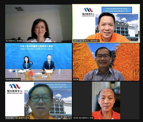 参与线上交流的成员也包含大使馆张天秘书及独大教育中心刘伟义署理理事长、秘书张运华博士、林泽民财政及周丽娟执行秘书。