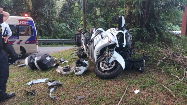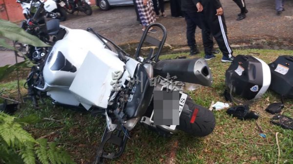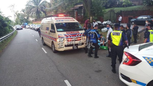 事发后,救护车受召到来,救护员检查后证实他已经没有生命迹象。他所骑的大型摩托车,则车头严重毁烂。