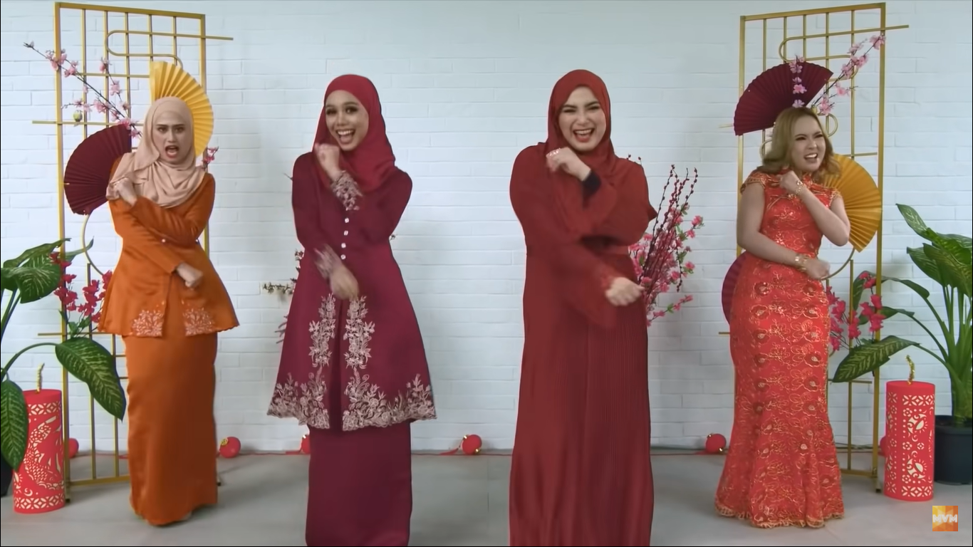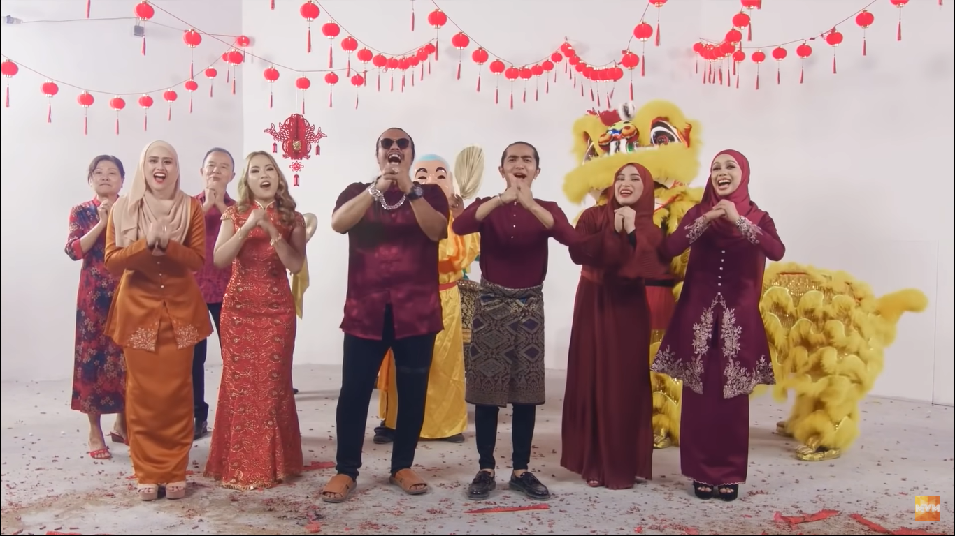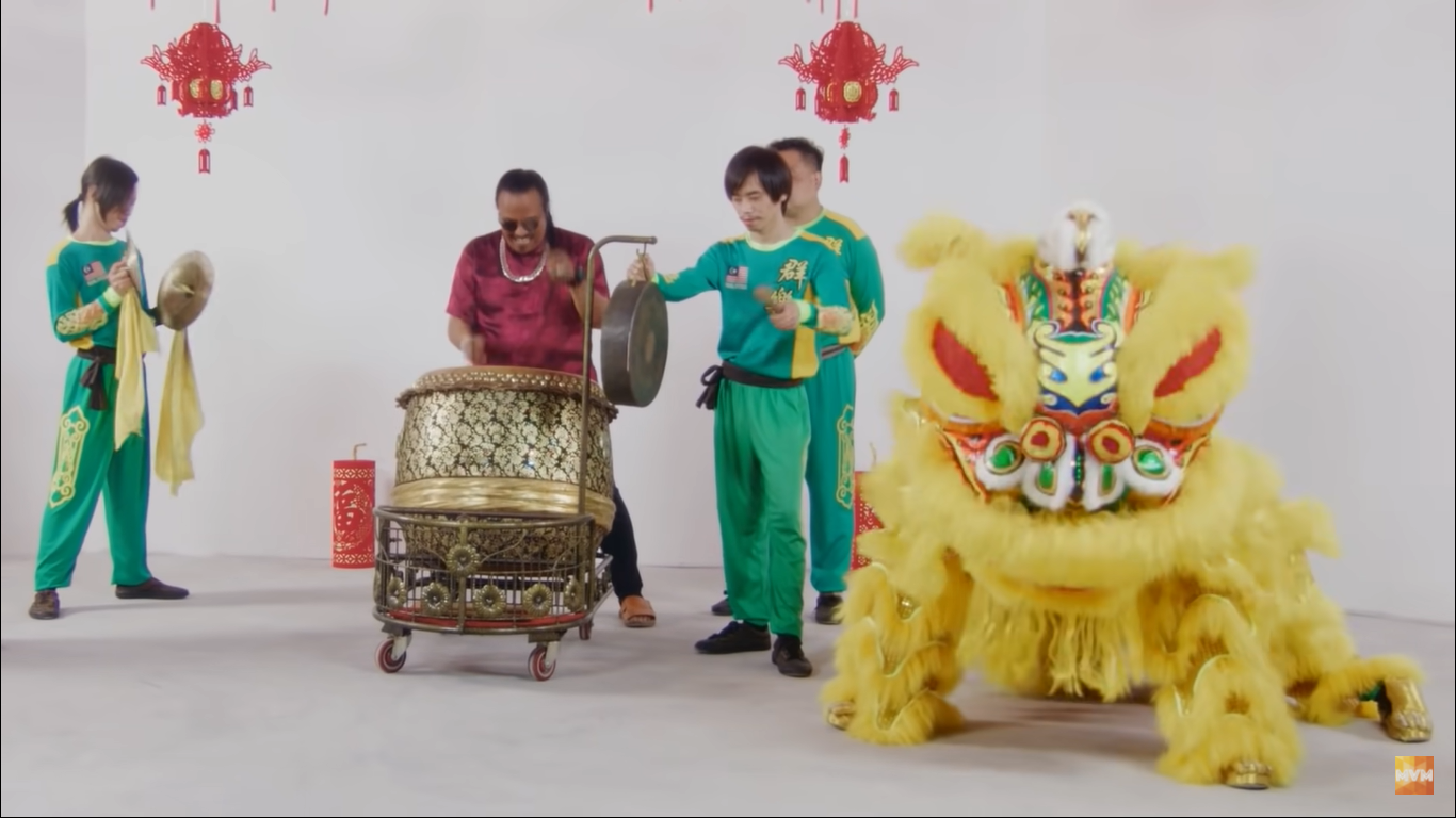 在《Dong Dong Qiang》歌曲MV中,马来艺人一起穿上红彤彤的衣裳载歌载舞,还有柑、春联和舞狮等元素,年味十足。