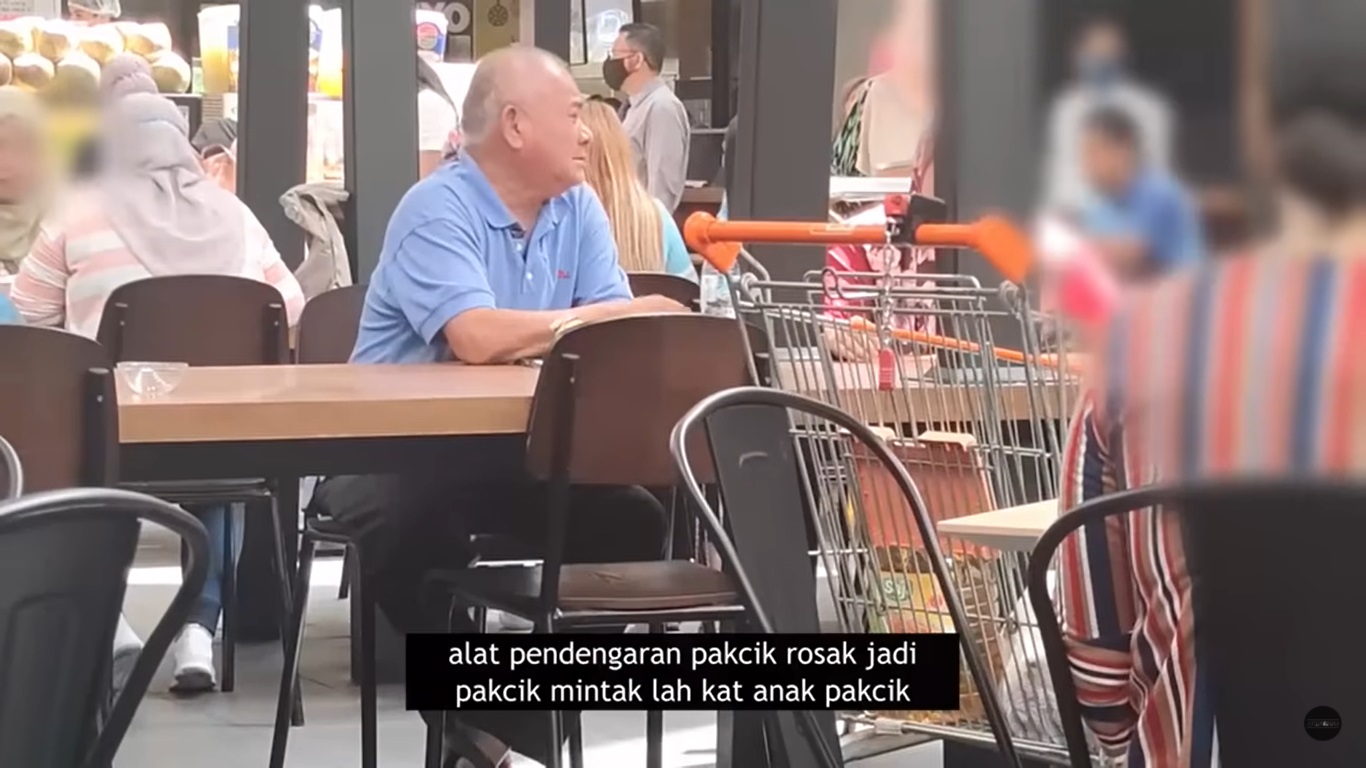 最近,一个马来Youtube频道“我关心”(Aku Peduli)就做了这样的一个社会性实验影片,让一名演员扮演老人家,上演了一段在公共场所打电话乞求孩子给他100令吉来修理助听器,但却被孩子拒绝的戏码,看看周遭的人对此会有什么反应。