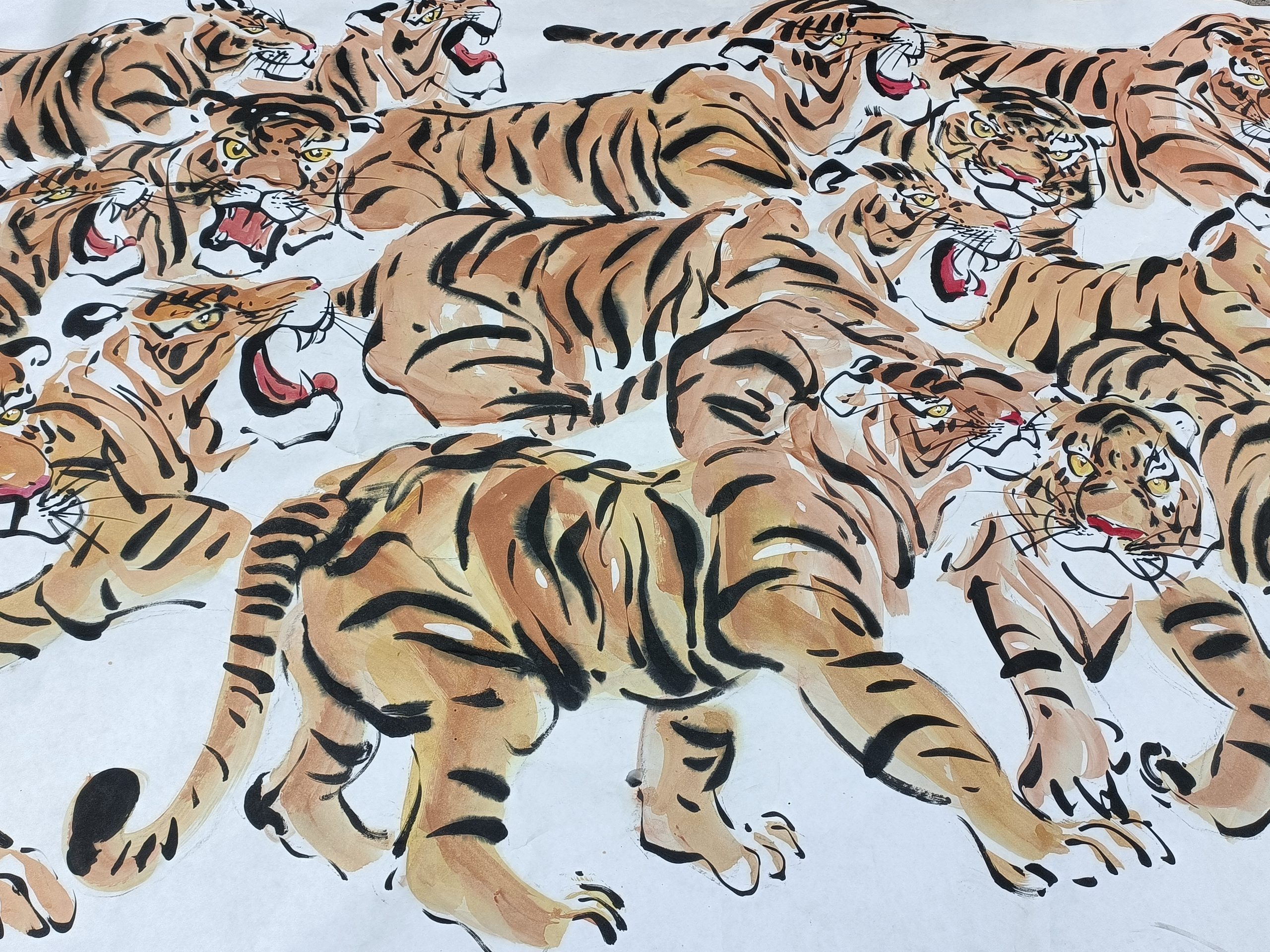 其中一名画家郑英杰则说,他这次一共画了150只老虎,在画老虎之前必须去研究老虎的四肢、神韵及形态,因此绘图过程中是非常有挑战的。
