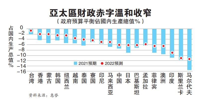 疫情爆发近两年来各国政府大举纾困,亚太区主权国家财政赤字普遍扩大,2021年应是近年来最高纪录的一年。